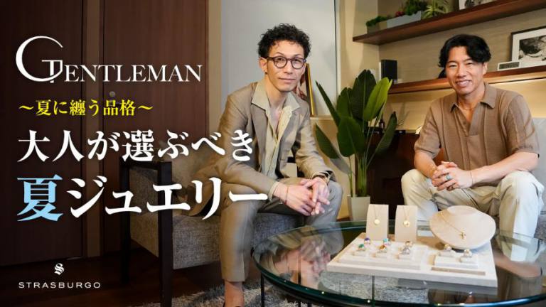 腕周りが露出する夏はとくに活躍するメンズブレスレット。自分のスタイルに合わせやすいのは一体どのようなアイテムなのか解説していきます。夏はどうしても暑さから、カットソーや、 ショーツをチョイスしてシンプルでリラックスしたスタイルを選び がち。 さらにシンプルやリラックス一辺倒でカジュアルになり過ぎてしま った事も多いのではないでしょうか。そこで、この記事ではシンプルスタイルやリラックススタイルに合わ せると“スタイルをアップグレード”してくれるブレスレットをコ ーディネート別にご紹介致します。 夏のジュエリー選びを、より立体的にご覧いただきたい方へ。 STRASBURGO×GENTLEMANのYouTubeでは、「大人が選ぶべき夏ジュエリー」をテーマに、夏の装いにふさわしいジュエリーの選び方や、スタイリングのポイントを動画でご紹介しています。 本コラムとあわせてご覧いただくことで、ブレスレットをはじめとする夏のジュエリー選びを、より具体的にイメージしていただけます。 ブレスレットを選ぶときに意識したいポイント まずは様々な種類があるブレスレットの中から自分にぴったりのブレスレットを選ぶ為のチェックポイントをご紹介。チェックしたいポイントは2つ、“素材”と“ボリューム”です。 ポイント1 “素材”