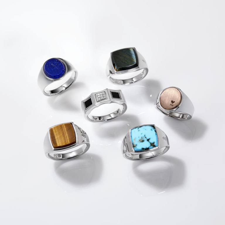 本コレクションでは、ブランドシグネチャーのシグネットリングコレクションを拡充。「ホークアイ シグネットリング」や「タイガーアイ シグネットリング」がラインナップに加わる。